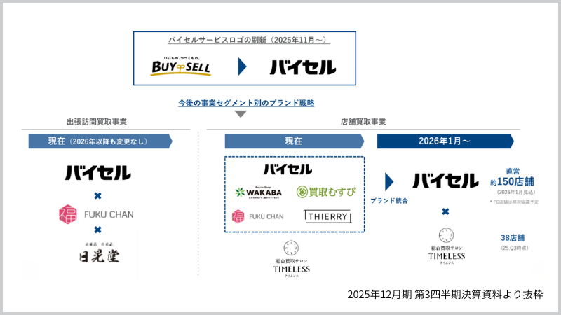 ブランドについても同様です。すべてを『バイセル』に統一するつもりはなく、お客様の層や立地条件などが近しいものをまとめることで、広告出稿やマーケティングの面でメリットを享受できると考えています。