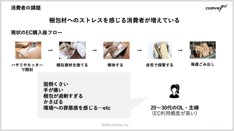 そうですね。たとえば、過剰梱包の問題があります。インターネットで商品を購入いただいた際に、EC事業者さんは商品を送りますが、「お客様にモノを安全に届けたい」という想いから、いわゆる過剰梱包になると思うんです。