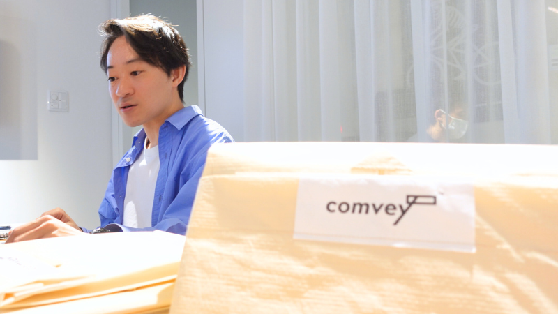 「comvey」は造語なのですが、元にあるのは英語の「convey」です。「convey」にはふたつの意味があって、ひとつはベルトコンベアのように「モノを運ぶ」という意味です。もうひとつは、「人に想いを伝える」というものです。私は物流の課題の根本にはコミュニケーション不足があり、それを解決したいと考えていたので、社名を「ともに(com)+想いを伝える(convey)=comvey」にしました。