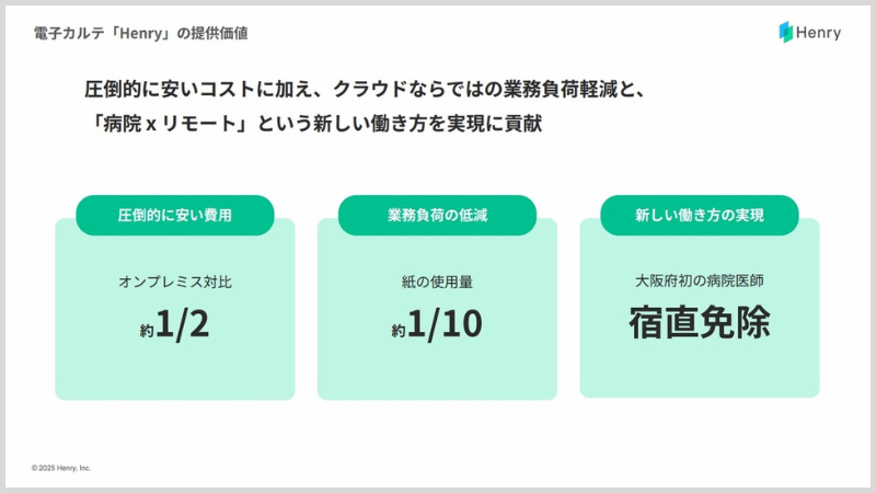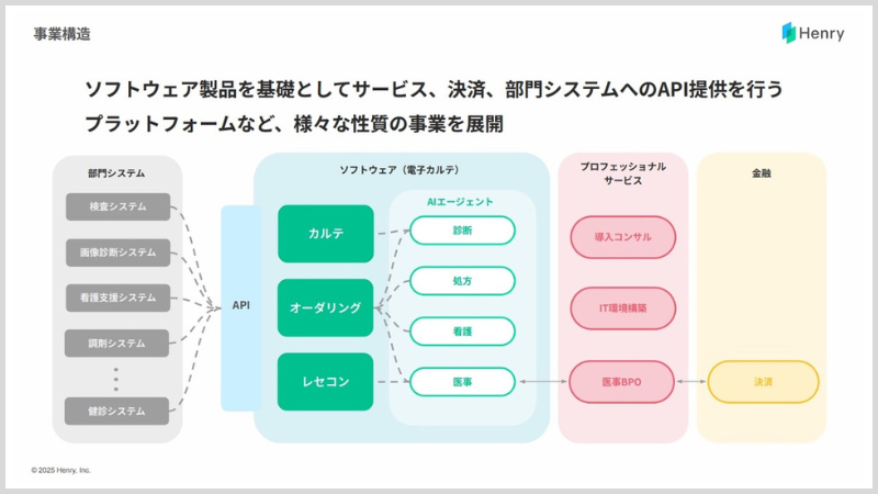 事業内容:中小病院向けレセコン一体型電子カルテ「Henry」の開発・提供