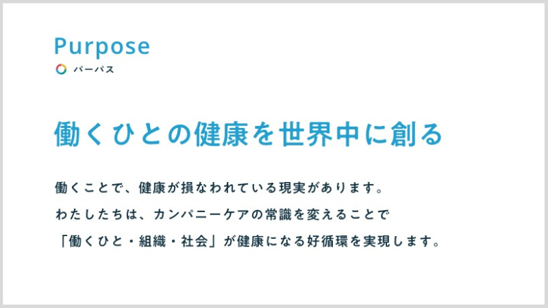 やはり事業を大きくしていかないと、『働くひとの健康を世界中に創る』というパーパスを実現できませんし、これが実現できないと自分たちの存在意義を失ってしまいます。それに世の中にはルールや仕組みがないから起きてしまう職場での事件や事故も、まだまだ残っています。それらを減らし、なくしていくことが、創業当時から変わらない私たちが果たすべきミッションのひとつでもあると思っています。