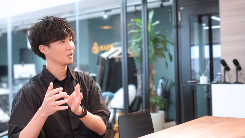 ちなみに、KAENのエンジニアは「いかに技術を極めるか」だけでなく「いかに事業をつくり、育てていくか」も重視しています。これは技術部門の役員の影響が強いと思うのですが。彼は、元々エンジニアとして経験を積み、一度起業したのですが自分が描いたようにはうまくいかず、大手企業に転職しました。でも、「もう一度自分でチャレンジしたい」ということで、KAENに来てくれたんです。