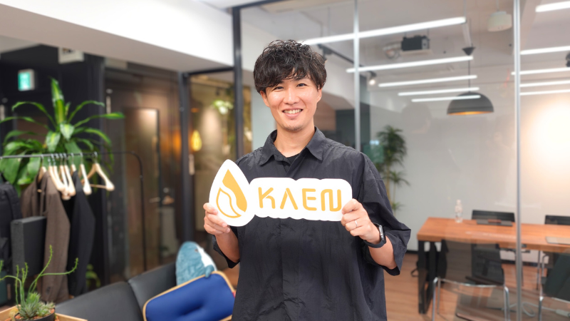 時代を変えるサービスは、「誰かのためになりたい」「こんな世界を生み出したい」という一人の熱狂的な想いから生まれるものだと思います。私は、そんな人たちがつくる”時代を変えるサービス”を支援したい。時代を変えるサービスの成長の支援を通じて、新しい産業の火付け役になりたい。そして、世の中を良い方向に変える火種をつくり、それを大きくして炎にしたい。そういう想いから、社名を「KAEN」に決めました。ちょうど令和元年で、31歳のときでした。