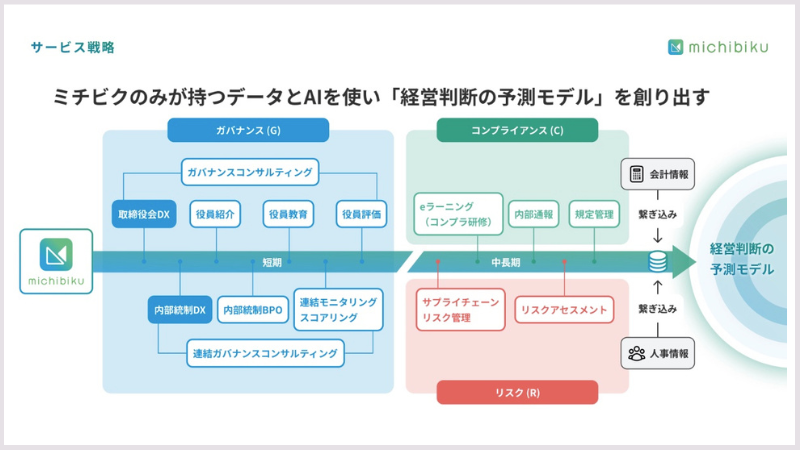 そうですね。GRCの中でも特にG(Governance)のところは完全にホワイトスペースになっているので、まずはそこを抑えに行 っています。AIの登場で技術のコモディティ化が加速している中で、今後は「どんなデータを持っているか」がより重要になってきます。『michibiku』は、企業の最重要意思決定機関である取締役会のデータを取り扱います。そして、全役員が必ずログインして操作をするので、能動的な活動データがたまっていきます。そういうシステムって、なかなかないと思うんです。