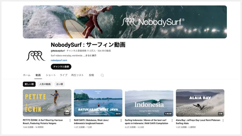 ※画像をクリックいただくと『NobodySurf』のYouTubeチャンネルにリンクします。