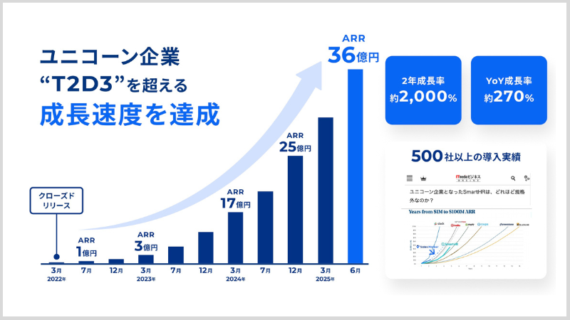 また、営業組織に変化があった場合も、AIエージェントによる自動化を活用することで活動を止めずに進められるよう工夫を重ねています。こうした取り組みを通じて、お客様にご満足いただきながら導入社数を伸ばしてきました。