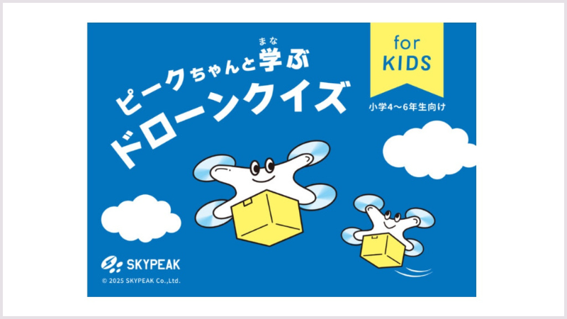 今年は「ピークちゃんと学ぶドローンクイズ」と銘打ち、ドローン博士を目指すクイズもつくりました。誰もが気軽に楽しめるように、コミュニケーションデザイナーさんに企画やイラスト作成などで協力していただきました。スカイピークのHPで無料ダウンロードできるので、よろしければ見ていただけるとうれしいです。