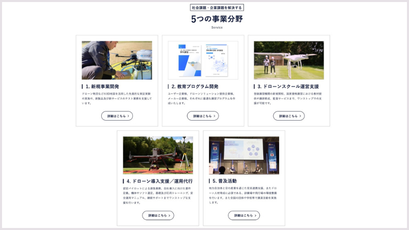 事業内容:産業用ドローンの教育・人材育成事業/導入支援・運用代行事業/コンサルティング事業