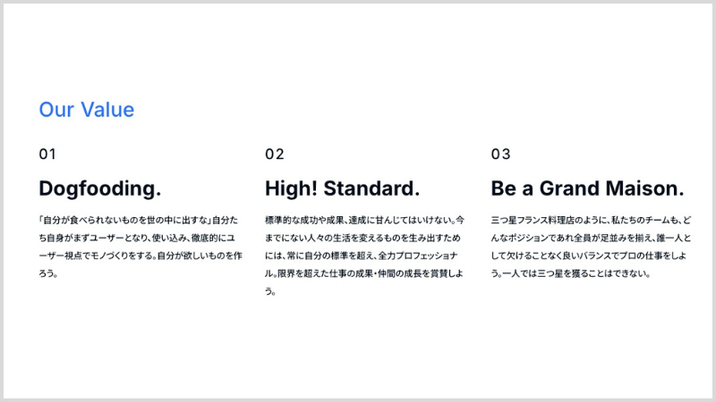 私たちはバリューのひとつに『Dogfooding.』を掲げています。簡単に言えば、「自分がユーザーの立場になったときに、不快に思うことは絶対にやらない」ということです。