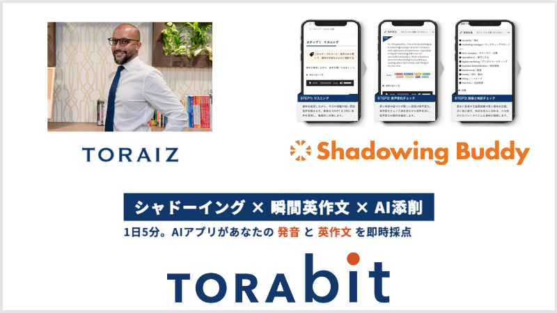 法人向けのサービスを強化していこうと思っています。英語コーチングの『TORAIZ』や、英語シャドーイング添削サービスの『シャドーイングバディ』はすでに法人向けに提供していますが、これらに加えて、最近ではAI英語学習アプリ『TORAbit(トラビット)』の法人向けサービス提供を開始しました。