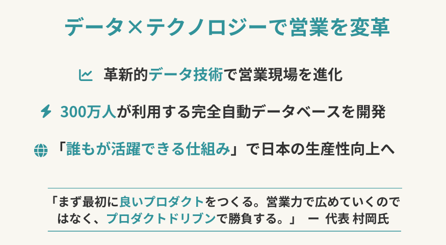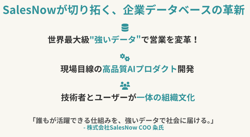 データ技術の知見を携え、プロダクトドリブンな組織を率いるSalesNow村岡の、日本の未来のために僕たちがやるべきこと。ビジネス支援・公共構造改革データ利活用DX経営哲学Recommender渡邉佑規KUSABI 代表パートナー2024.07.31 公開