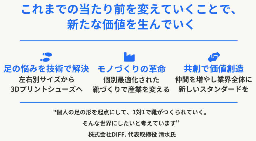 足の悩みを、靴で解決する───出向起業というスキームで事業を始めた清水が目指すのは、「靴に足を合わせる」という世の中の当たり前を180度変えること。ライフスタイルリーダーシップ事業ピボット社会実装公共性Recommender武川敏也池田泉州キャピタル株式会社 投資部 部長2025.10.16 公開