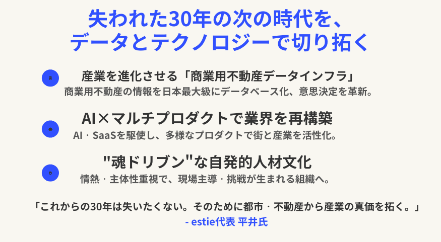 自身の、そして現場の強い当事者意識を武器に、マルチプロダクト戦略を推進するestie平井。挑むのは巨大な商業用不動産市場のアップデート。Recommender湯浅 エムレ 秀和グロービス・キャピタル・パートナーズ株式会社 パートナー2024.10.17 公開