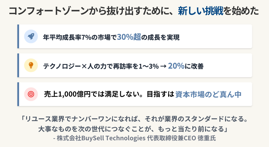 コンフォートゾーンの外へ───リクルート事業責任者からリユース業界に飛び込んだ徳重。“前始末”で描く国内トップクラスの企業への成長戦略。物流・インフラリーダーシップ企業文化倫理と責任循環型社会Recommender篠﨑 新悟株式会社よりそう 代表取締役社長COO2025.12.22 公開