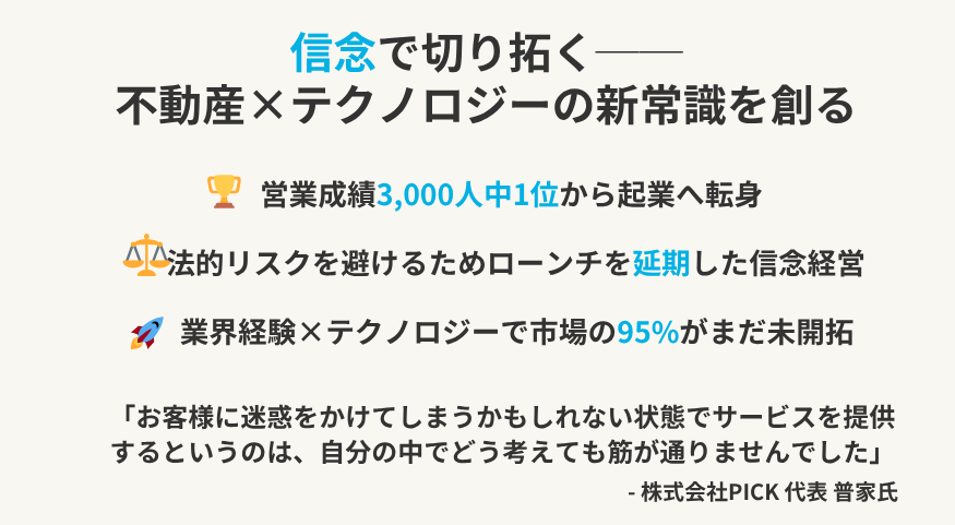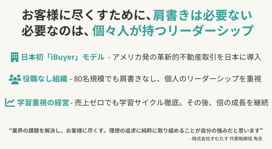 自身を“事業家ではなく理想家”と語る角高広。不動産業界に新たな仕組みを持ち込み、従来とは異なる組織づくりを進める彼は、綺麗事をどこまで貫くことができるのか。物流・インフラ構造改革経営哲学人材戦略企業文化Recommender澤山陽平株式会社Coral Capital 創業パートナー2025.09.21 公開