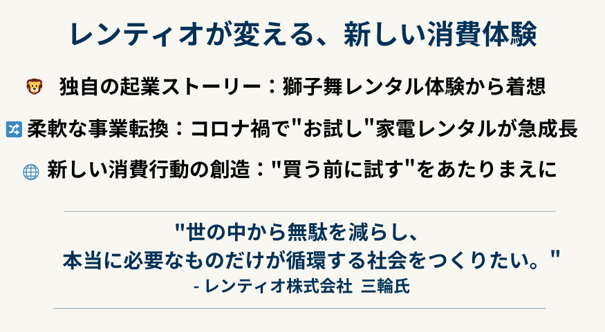 市場づくりとプロダクトづくりを同時並行。投資家に「S級の経営難易度」と言われる中で挑戦を続ける、RABO伊豫愉芸子の覚悟。ライフスタイル市場創造データ利活用AI・アルゴリズム起業家精神Recommender三輪 謙二朗レンティオ株式会社 代表取締役社長2024.11.21 公開