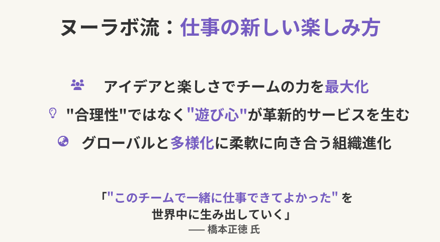 効率と非効率。合理性と非合理性。変えることと変えないこと───。上場を果たし、20周年を迎えたヌーラボ橋本正徳の心の中に、少しだけお邪魔した。IT・テクノロジー企業文化プラットフォーム戦略ヒューマンタッチ内省と対話Recommender白砂なぎさRPO事業代表2024.07.31 公開
